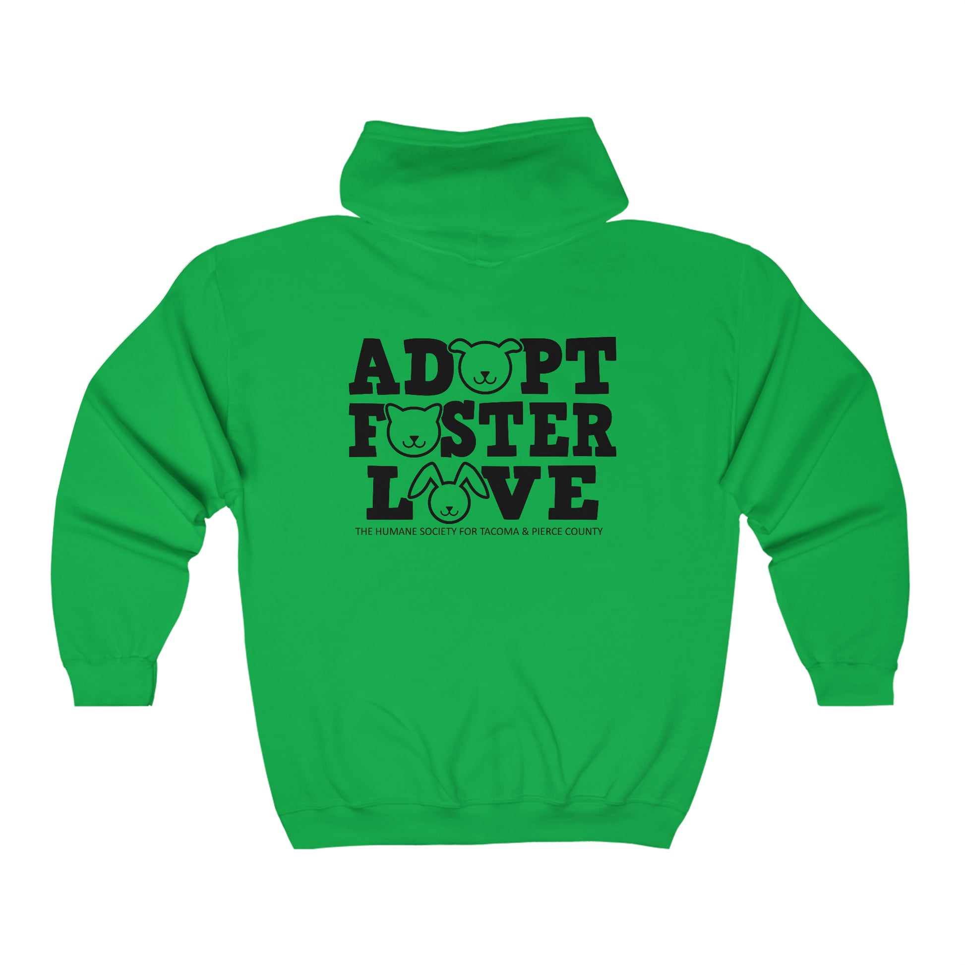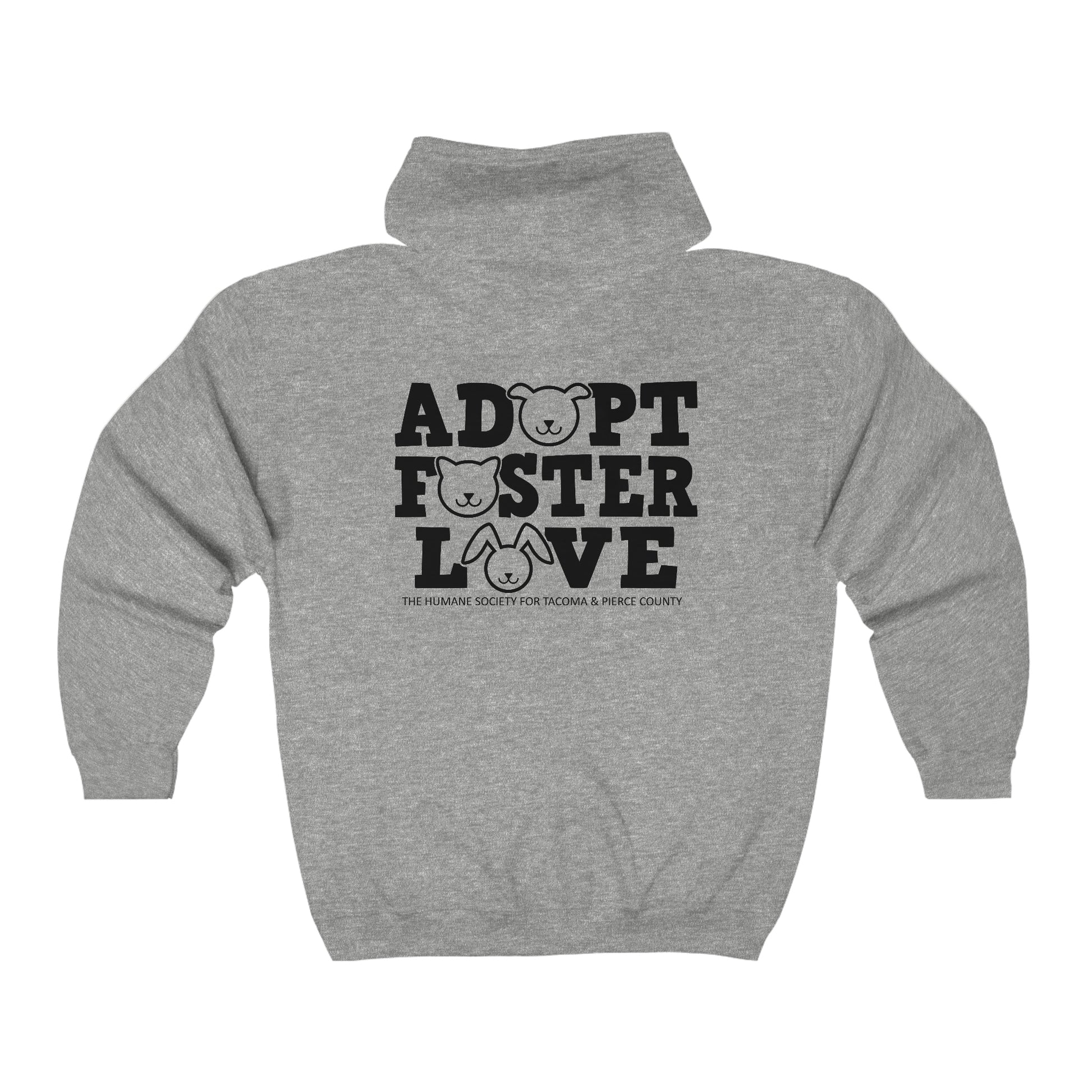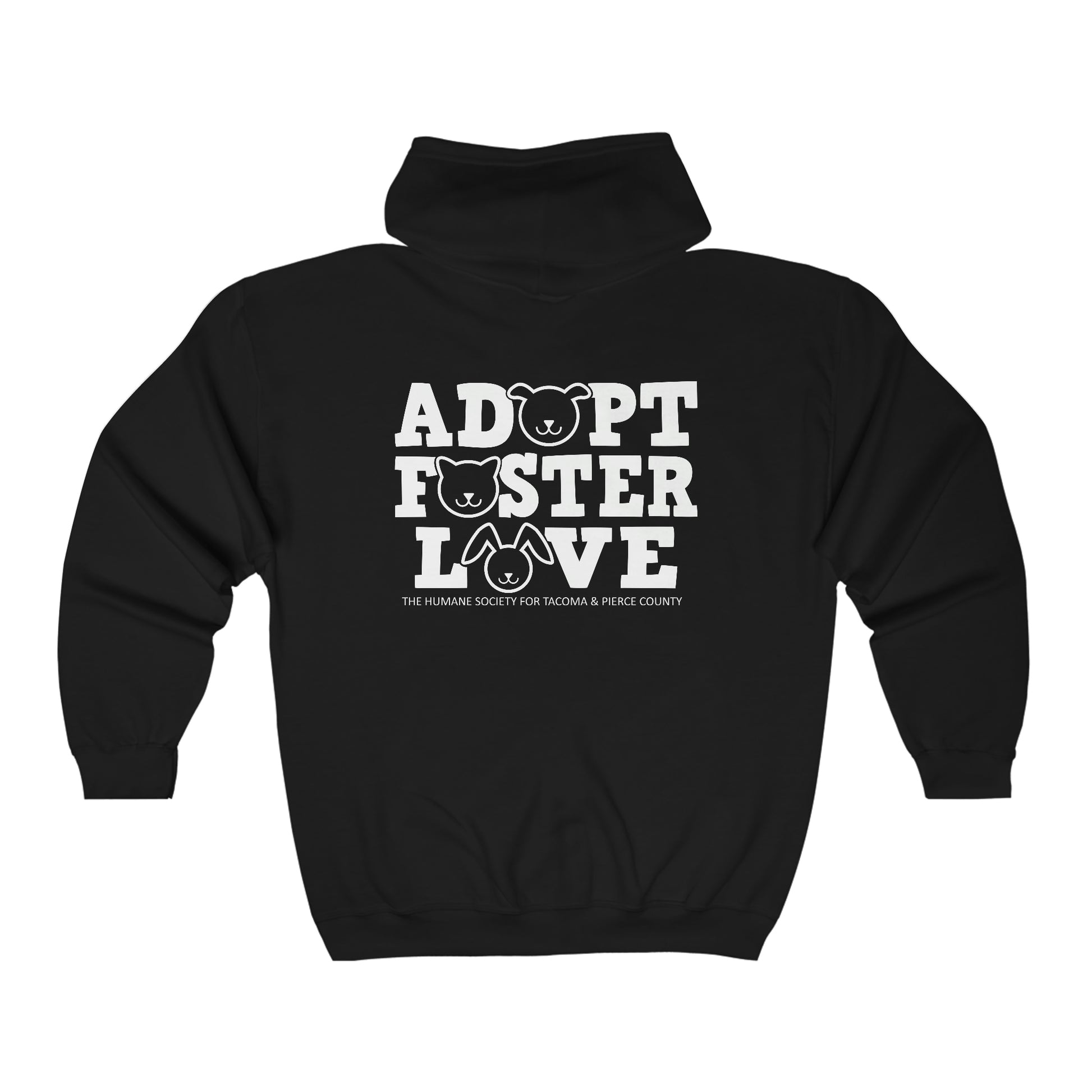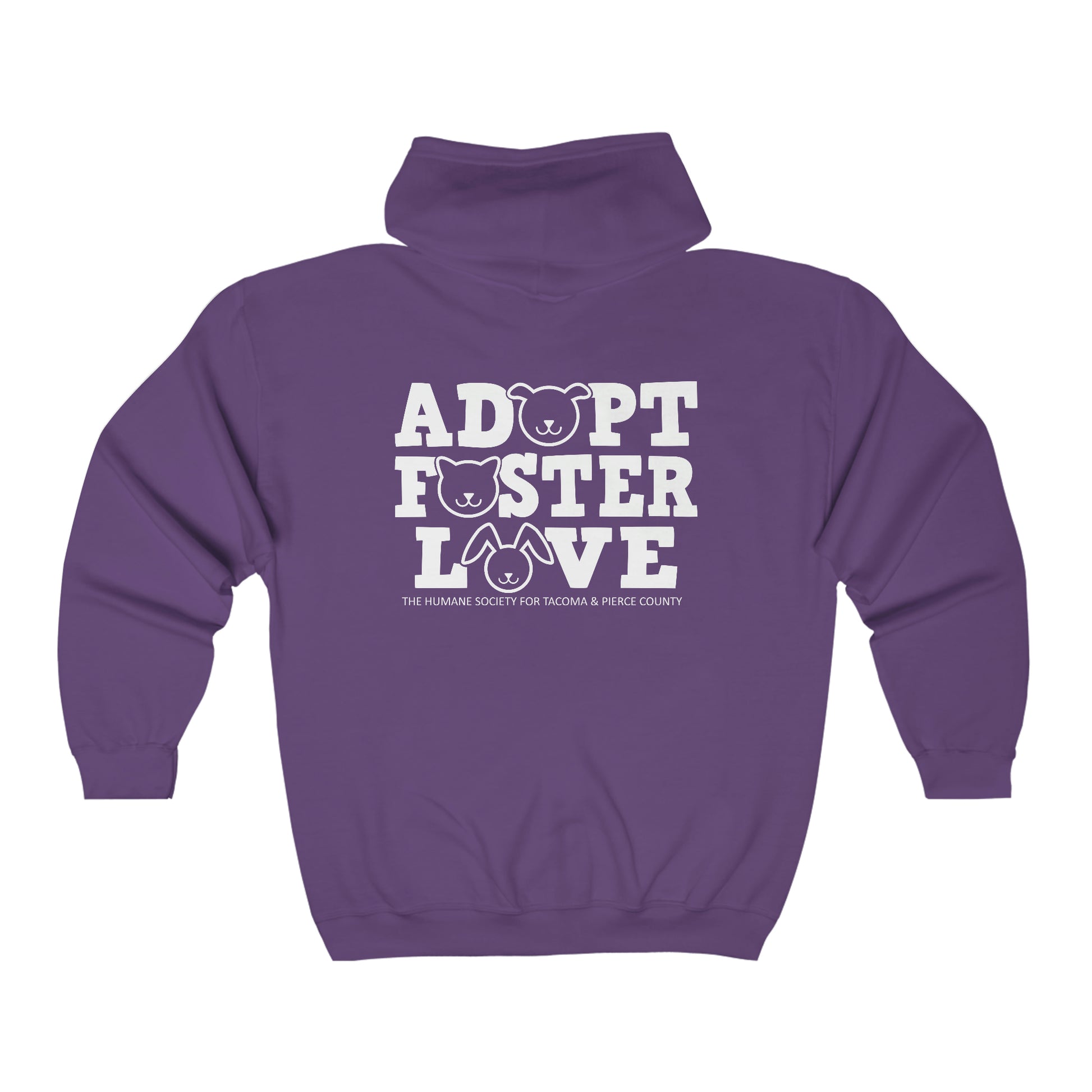 Adopt, Foster, Love Full Zip Hooded Sweatshirt
